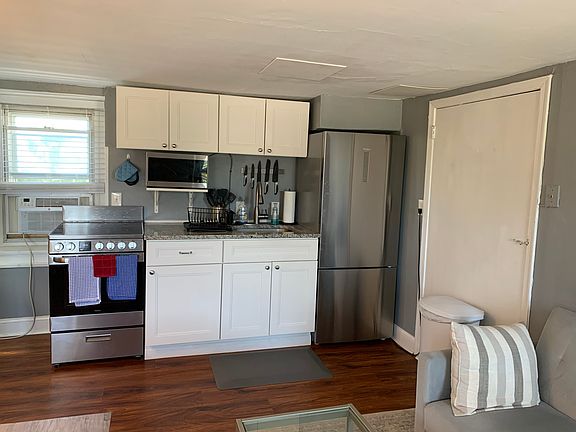 Furnished One bedroom, 2nd and 3rd floors of 1812, stone, farm house at 452 Germantown Pike, Lafayette Hill, PA 19444. 2nd Floor--Living area and new kitchenette (15X12). Coach, coffee table, desk and chair. 3rd Floor--Bedroom (12X10). large closet, and bath. Queen bed, dresser, A/C. Entryway and washer/dryer. Remodeled January, 2020. One year lease, then mont-to-month. Water paid by owner. Utilities (electric) reportedly average $80.00/month.
