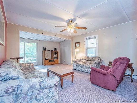 Great starter home or Upstate country weekend getaway. Needs a little TLC but "A STEAL FOR THE MONEY"! 2 good-sized bedrooms, and extra bonus room for office or den. Stay warm with the wood burning stove. Large deck that needs power washing and staining. Shed and also detached 10'x20' stall/barn in the back yard. New boiler and well pump, newer roof. Everything works. Horseshoe driveway off the main road. Discover all the Catskills have to offer - close to ski resorts, hiking, hunting, restaurants and so much more. Don't let this one get away! Only a 1/2 mile to Green Lake. 6 minutes off the NYS Thruway - Exit 21 and close to everything. This is an estate and being sold "AS IS & CASH ONLY".