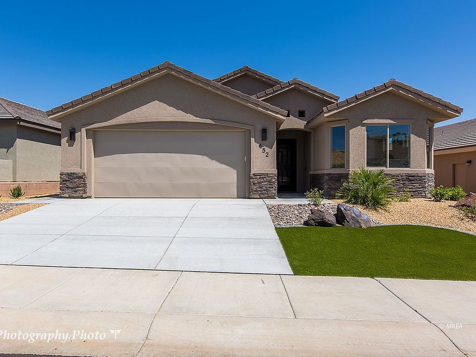 Come check out this brand new home in Shadow Hawk. This east facing backyard home offers 1901 sf of open concept great room/kitchen area , has 2 x 6 exterior construction, 3 bedrooms, 2 1/2 baths and an extended 2 car garage with epoxy flooring. Modern finishes in the brown, grey and taupe colors. Custom dark walnut knotty alder cabinets and quartz counter tops throughout, porcelain wood plank style flooring in high traffic and wet areas, carpeting in the bedrooms and closets, tiled tub and shower enclosures. All stainless steel appliances includes refrigerator and white washer/dryer. Direct access from the master bathroom to the laundry room. The (2) guest bedrooms can be concealed with the custom barn door that allows for guest privacy. Pantry also concealed with custom barn door. The full covered patio in back offers great views of mountains to the south. Call now for a preview!