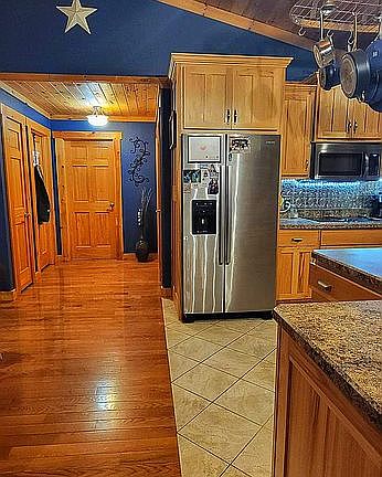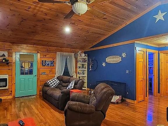 Log home built in 2005. This home has 3 bedrooms and 2 full baths, with a walk in closet. The living area and kitchen offer a vaulted ceiling. A mud/laundry room is also in this home. The property is .90 of an acre. The garage is a detached 24x24. Great home and location on a quiet road, that is located in county.