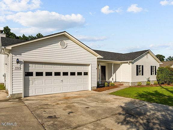 452 High Hill Road is a lovely 3 bedroom, 2 bath home with some lovely recent cosmetic updates and sits on .65 acres. The living room has a vaulted ceiling and opens right into the kitchen that has new granite counter tops and shiplap backsplash. Fresh paint and new LVP flooring runs throughout the house including the family room that has a fireplace, which isn't connected to propane currently. There is an oversized laundry room as well as an additional room with a closet to use how you want but the septic permit is for 3 bedrooms. The roof is approximately 3 years old and the 2-car garage gives you plenty of storage space if you need more than the storage shed in the backyard allows. There are recorded covenants but no active HOA at this moment.