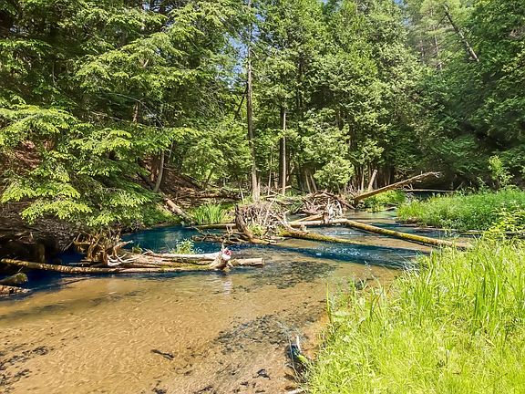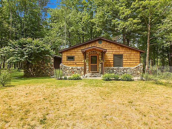 Welcome to this stunning real estate listing, offering a perfect blend of tranquility, natural beauty, and luxurious features. This 5+ acre property boasts three bedrooms, two bathrooms, and a detached two-car pole building. It is situated on a vast parcel of land with an impressive 1200 feet of frontage along the Class-A Trout Stream, Pine Creek. There is no property like this on the market! 2 parcels! Incredible fishing! Located just minutes away from the Blacksmith Bayou boat launch and the High Bridge boat launch, this property provides unparalleled access to one of Michigan's most amazing rivers, The Manistee River. Across the road, you'll find hundreds of acres of state land. The wildlife on this property is abundant. This house has been completely renovated within the last six years, with everything being stripped down to the studs. It showcases high-end finishes throughout. Premium Cedar Shakes adorn the exterior, and the lower exterior curtain of the house features custom, hand-selected stones, adding a unique and attractive touch. Top-grade Low-e, double-hung windows flood the space with natural light. The flooring consists of 3/4" hickory wood floors, complemented by tile in the kitchen, hallway, laundry, and bathrooms. The kitchen features exquisite Knotty Alder hardwood cabinets, along with a beautiful granite countertop. The ceilings boast tongue and groove wood finishes, adding warmth and character to the home. Zoned heating and a wood burning stove ensures optimal comfort throughout the year. A charming guest house on the property offers the 3rd bedroom space with its own bathroom. High-speed internet connectivity has just been added, along with a custom tree house. Whether you are seeking a year-round residence or the perfect cabin getaway, this property offers the best of both worlds. Immerse yourself in nature, unwind in the peaceful surroundings, and indulge in the luxury.
