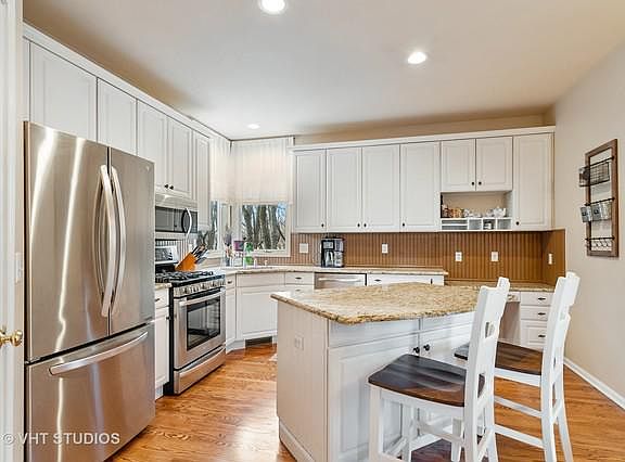Immaculately maintained semi-custom 2 story in beautiful Kelly Woods. This wooded neighborhood located in highly rated school districts. Enjoy peaceful, private setting on one of the nicest lots, includes sprinkler system & Leaf Guard Gutter System. Trails through the woods that open up to a large meadow behind - fun for kids of all ages! Totally updated-shows like a model home. Recently New is the Following; - Nest Thermostat; Nest Doorbell, Exterior Nest Cameras and Nest Smoke Detectors, New Hot Water Heater, New Water Softener (Rented), New Water Filtration System, LED Lighting on 1st floor, New Touch Button Light Switches & New Stainless Steel Appliances. All Hardwood flooring recently refinished. Open kitchen has walk-in pantry-really nice! All cabinets have pull out shelving, granite counter tops complete the picture. Enjoy the sun room-nice quiet space w/loads of windows-welcome Mother Nature. Master bath features a soaker tub w/spa jets for relaxation. Spacious full finished English bsmt adds an extra dimension. An entire floor of living space w/bath & wet bar serves many purposes. Kids-teen hangout, in-law potential,etc. Loads of storage w/built in shelving. Convenient location, close to train, shopping & historic downtown.