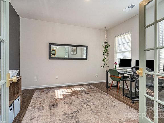 Welcome Home! Enter inside this lightly lived-in gem in the highly sought-after Gambill Forest community of Mooresville. Designed for connection and comfort, the open-concept main floor features a chef’s kitchen with stainless steel appliances, quartz countertops, and a butler’s pantry, plus Luxury VP flooring for elegance and durability. A main floor private office makes working from home effortless. Upstairs, the primary suite is a peaceful retreat with a spacious walk-in closets and en-suite complete with walk-in shower, while plush carpeting adds warmth. Thoughtful upgrades like window blinds, ceiling fans, and modern lighting make this home move-in ready.