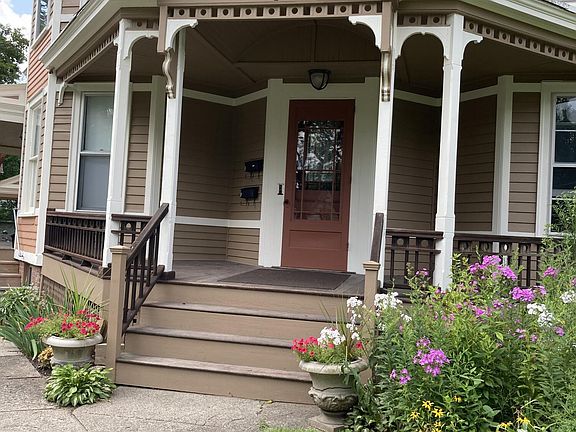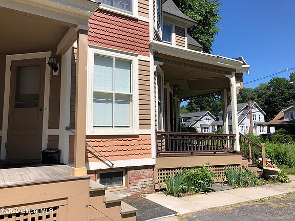 Beautiful, well maintained, four unit Victorian in exceptional Delmar location! 2 units up and 2 down, all with 1 bed/1bath. Fully occupied w/long term tenants make for great income, or could be converted to 1 family w apartment/in-law. Separate natural gas, electric & hw for all units. Apartment #2 was beautifully remodeled in 2017. Wood moldings and baseboards, hardwood floors and charm!! Cedar siding painted in 2021. Most of roof on house redone in 2018, on carriage house in 2017. Nice curb appeal with covered porches. Walk to stores, restaurants, library and bus stop.
