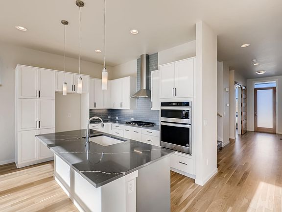 Designed specifically for these western facing lots to capture sweeping western views from the rear of the home with large windows. The open plan and contemporary finishes bring the classic Farmhouse and Prairie elevations into the 21st century, with loads of mood-enhancing natural light and outdoor living front and back. Pass the private front study, staircase and owner's entry and enter the social center of the home-the open living, dining and kitchen areas, flooded in natural light from three directions. The plan features a front or rear master suite with beautifully-appointed five-piece bath and walk-in closet. Bedrooms two and three share a full bath with dual-sink vanity. Say yes to the lower level finish and expand your living, sleeping and bath options. Design driven ; Markel Homes.