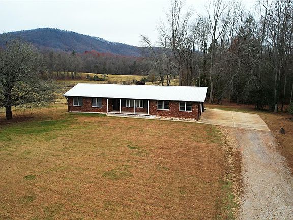 ON PASTORAL SITE AND IMPRESSIVE - The floor plan, condition, & views from this 4 Br 3.5 Ba home are the highlights of this home. You'll be impressed with the floor plan that has the living room with a massive and custom rock fireplace, immaculate eat-in kitchen (fully equipped with appliances) with dining area, and multiple private bedrooms across 2 levels of living. The main level gives the living room, kitchen/dining, then 3 bedrooms and 2.5 bathrooms. The lower level gives another bedroom, bathroom, den with fireplace, secondary kitchen possibilities, and several additional rooms. All the extras are here: front porch with long range pasture views, rear deck with views to Jones Mountain, and the attached garage. The +/- 5.72 acres is level, mostly grassed, has an RV hookup, and offers privacy at the end of the drive. The bonus is a large detached workshop / barn. The location convenient to Marion, Lake Lure, and I40 and is located +/- 9 minutes / 4 miles from I40 Exit 83.