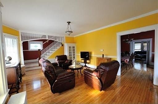 Perfect balance and size in this beautiful New England Colonial. First floor has a large and spacious floor plan, formal living room, dining room, and family room. Beautiful moldings, built-ins, stained glass windows and window seats, high ceiling, recessed lighting. Stunning hardwood floors thru-out. Private master suite with sitting area. Finished 3rd floor walk-up. Private deck off the kitchen. 2 car garage with work area. Great location on the West side!