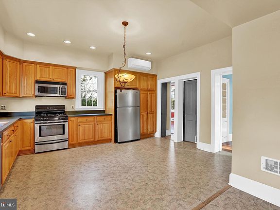 This charming home, built in 1900, is close to the center of Sellersville Borough. It is situated on a .4+ acre lot with plenty of space to garden, not to mention a barn that may offer the new homeowner creative options for its use. This home has a large kitchen with cabinets featuring pullout shelves and a pantry. The living room has hardwood flooring and an exposed brick wall that makes a great accent. The dining room offers a simple elegance of years past, with hardwood flooring.  The second level highlight is the primary bedroom with a large walk-in closet, plus a smaller one. Another bedroom on the same level faces the backyard and has a generous closet that only needs shelving installation. There is a third bedroom with no closet, typical of the construction for the time, which could also be an office or study in the front of the home. The third level features two additional rooms. To the left of the staircase, this room could be the 4th bedroom, also no closet, which features a gothic-style window. This room has a passageway to the floored attic space on the same level. To the right of the stairway could be the 5th bedroom with another gothic-style window. The gas hot-water radiator heats during the winter, and the seven mini-splits throughout the home will cool and heat individual rooms throughout the year. Not to mention, any time of the year, you will not need to worry about losing power with the whole-house Generac Generator. The basement offers inside access and outside access through the Bilco Door. Enjoy all the local amenities, including Markey Park with a golf driving range, walking path, playground, and picnic area, Sellersville Threatre, Washington House Restaurant, and the nearby Lake Lenape Park which has a disc golf course.