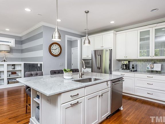 Stunning green-certified "Bristol" plan built by Homes By Dickerson. Briar Chapel homesite backs up to woods/trails - also has wooded buffer on one side! Light/bright gourmet kitchen with Carrara marble, high-end stainless appliances. Keeping room with beautiful built-ins just off of kitchen. Screened porch overlooks woods and offers a double-sided fireplace. Formal dining room and living room on 1st floor. Master + 3 other bedrooms on 2nd floor. Close to clubhouse/fitness center, and two saltwater pools.