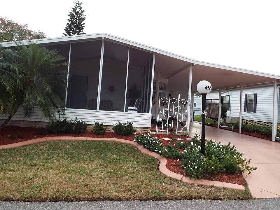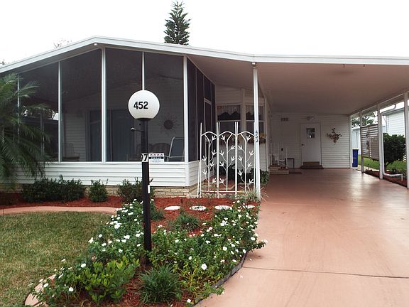 2 BR 2 BA 900 SQ FT home. Open floor plan, Partially furnished, Loads of Cabinet and storage space. Extra large shed, long covered driveway. Newer counter tops, large screened lanai, mirrored closet doors. Beautifully kept.