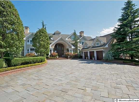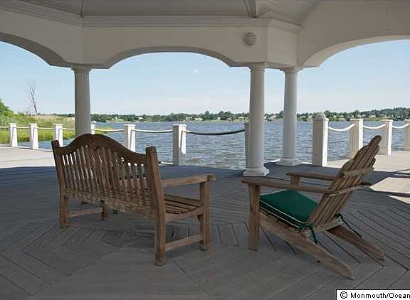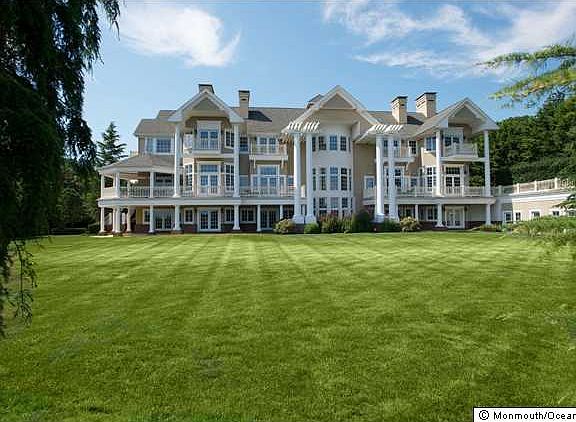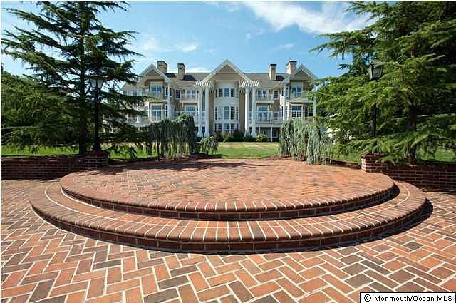 Renowned architect Robert Adlers stunning Navesink Riverfront 14,500 - sq. ft. masterpiece incomparable in design, amenities and essence.Gates open to reveal a stone courtyard bordered by brick walls and lavish landscaping. Dramatic open floor plan -soaring ceilings with intricate moldings replicating wave and water,storybook staircases,sweeping balconies run the length of the house overlooking sunsets on the river. A gourmets kitchen,pub room,five fireplaces,solarium. Dock boardwalk.