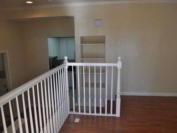 Newer home. Washer dryer and fridge included. 2 story 2 bedroom 2 bath unit with laminate wood flooring throughout home with exception of kitchen, laundry room and baths which are tile. Bedrooms feature ceiling fans with one bedroom upstairs with hall bath and downstairs master bedroom with fireplace and attached bath. Master also has sliding door access to front yard. Upstairs features Slider from living room/ dining room out to large balcony. Kitchen features stainless steel appliances, dark grey granite counters. Tenant responsible for utilities. Shares one common wall with adjacent unit. 1 year, Additional deposit required for approved pets. . Please do not disturb tenant.