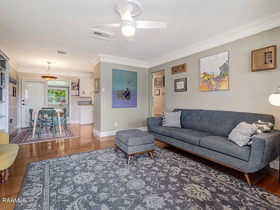 Precious cottage on a large lot with 3 bedrooms, 2 baths plus sitting area off kitchen. Home has gorgeous wood floors, ceramic tile in baths & sits in a quiet cul-de-sac type dead end circle off Rena Drive and next to Little Veron's. You must see this neat home with a huge shaded backyard plus shed in the heart of Lafayette close to neighborhood schools, walking path to River Ranch, entertainment, restaurants & super markets. This is an affordable home with LOCATION, LOCATION. This immaculate home comes with refrigerator, washer, dryer, plantation shutters and beautifully landscaped for this picturesque one of a kind with a one car garage beauty.