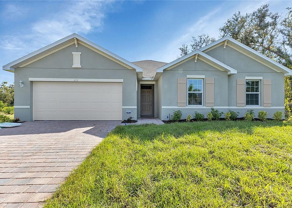 This COMPLETED move-in ready home is ready for you to make it your own. The builder is offering $15,000 towards buyers’ closing costs and prepaid AND a 5.5% interest rate for conventional loan buyers that can close before 03/31/2024 when using their preferred mortgage company. At the end of the cul de sac this home backs up to undeveloped land that makes you feel like you are living in a nature preserve. Step into the epitome of contemporary luxury with the meticulously crafted Carin floor plan, offering a generous 2,090 square feet of elegant living space. This brand-new residence showcases an open-concept great room design, creating a spacious and inviting ambiance that sets the stage for comfortable living. Distinguished by its impeccable attention to detail, this home has wood plank tile flooring throughout the main living areas, delivering both style and functionality. Plush carpeting graces the bedrooms, offering a cozy retreat for relaxation. The heart of this home is a culinary masterpiece. The kitchen is a chef's dream, featuring a center island adorned with exquisite quartz countertops. Top-of-the-line stainless steel appliances, including a refrigerator, dishwasher, range, and microwave, elevate the cooking experience. A roomy corner pantry and ample storage options ensure your kitchen remains organized and efficient. The primary suite is a secluded haven, one extra large walk-in closet for your wardrobe needs. The ensuite bathroom is a spa-like sanctuary, complete with dual vanities, a private water closet, and a luxurious walk-in shower. A separate hall bathroom with a tub/shower combination caters to both guests and family members. Working from home is a breeze in the generously sized private den/office. This home comes complete with a smart home package that includes a camera doorbell and a smart thermostat The paver driveway and back lanai add to the home's curb appeal, while a full irrigation system keeps your landscaping vibrant year-round. With an electric garage door opener and a full builder's warranty, peace of mind comes standard. This extraordinary home is just one part of the incredible Deep Creek community, which itself is a must-see destination. The Deep Creek location is unparalleled, offering easy access to downtown Punta Gorda, local dining, shopping, medical services, boating access, and more. Don't miss the opportunity to experience the pinnacle of luxury living in this magnificent new construction home. Discover all that Deep Creek has to offer – your dream home awaits!