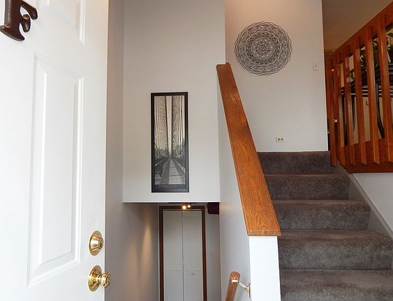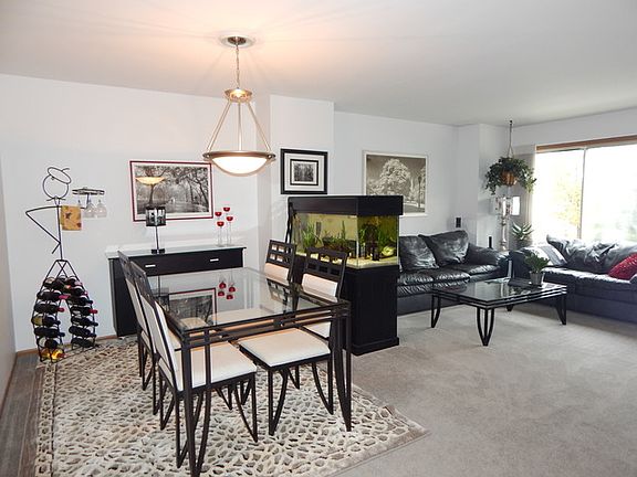 Spacious and updated home with great location! Upon arrival you are greeted by the private, fenced courtyard with patio. The main floor has an open plan including the living room & dining room with dry bar. Eat-in kitchen has Pergo floors, granite sink, water filtration, stainless steel refrigerator, stove & microwave; Bosch dishwasher, under cabinet lighting & closet panty. The second floor has both bedrooms including a large master suite with sitting area, two closets including a walk-in & en suite full bath. The garden basement has been finished to include a family room with wood burning fireplace & a built-in dual work space. Plenty of storage in utility room, under the stairs closet & in the attached garage. New carpet throughout, fresh paint, furnace/air conditioner 2014 plus 60 gallon hot water heater, air cleaner, humidifier & sump pump. Great location near Routes 34 & 59. Easy access to I88, Metra Station and Westfield Fox Valley Mall.