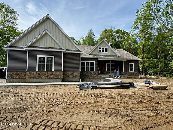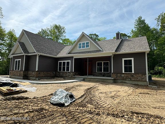 Gorgeous custom craftsman ranch on 5 wooded acres in beautiful Town Of Moreau. Loaded with upgrades! Home has beautiful open floorplan w 9' ceilings, large custom kitchen w granite SS appliances & upgraded cabinetry, living room w fireplace, formal dining room, entry area from garage w mudroom, laundry & half bath. Primary suite has luxurious bath and large walk in closet. 2 additional bedrooms and 4th room set up as an office but could be a bedroom if needed. Oversized side load entry garage, w storage area & full basement w 9' ceilings & walkout could easily be finished to double your square footage. Huge covered back porch leads out to beautiful private yard. 1 other 5 acre lot left! Build your DREAM HOME with us!