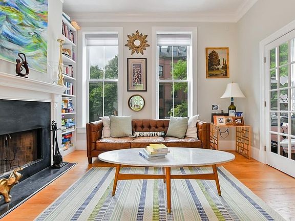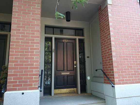 Incredibly sunny, corner, single family brownstone w/3 exposures of windows, 2 outdoor spaces & garage parking. Low stoop entry into the first level to a large center kitchen w/SubZero & Viking appliances, open concept dining & living rooms which flow directly out to the sizable bluestone patio w/plantings, grill space & full dining. Half bath on this level. Up the stairs is a double living room w/a wood burning fireplace, soaring 11 foot ceilings, 3 exposures of windows & a deck off of the back of the living space overlooking the lush Rutland gardens. Separate office or 4th bedroom on this level. One flight up are two family or guest bedrooms serviced by a full bathroom w/a tub/shower. Laundry is also on this floor. The top floor is a full floor master suite complete with a large bedroom with a sitting area, expansive master bath & double walk in closets. All the charm of a historic brownstone recently constructed in 2000. All heating/cooling/water systems have been replaced.