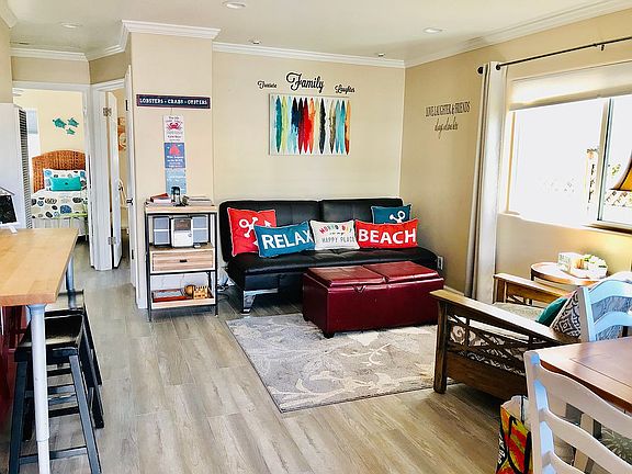 Welcome to the Happiness House! A Three Bedroom Italian Villa at the Beach! Huge Roof deck with 360 degree views, including the Rock, Ocean and hills! This Shangri-La is an active AirBnB Vacation Rental that has generated some very impressive rental numbers. Easily setup to rent out either the top or bottom separately. The kitchen has been renovated with modern cabinets, ceasar stone counters and butcher block topped sitting area that is open to the living room. Absolutely darling and welcoming. Two bedrooms are downstairs and a full bathroom. The stairway leads up to the another living room with balcony. This also leads to the Master bedroom with full bath as well. Out the back there is a nice patio space, a stairway for each level leads to the spiral staircase for the roof deck. The deck is the length of the home and amply wide. Excellent outdoor living and views! Furnishings are not being sold with property, inquire. VR Bookings extend to Sept and transferrable.