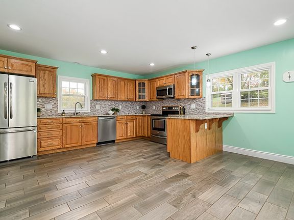 Beautiful country setting on almost 6 open acres bordered by trees. This charming farm house has an entirely brand NEW kitchen, new powder room, full bath upstairs, real Hardwood, Ceramic flooring & trim. Windows, Siding, Roof & Deck are brand new! Outdoor wood burner - hot water heat compliments gas heat. 200 amp electrical service inside the house. 3 Car Garage has 100 amp service with 240 volts to run all of your machines & tools. New Furnace. New Hot Water Tank. The Heat Master Outdoor Wood Burner can be used to heat a pool in the summer. Chickens love it here too! This property has all the potential to make your dreams come true!