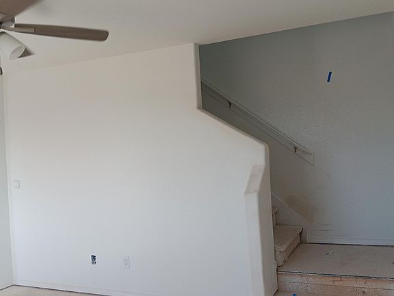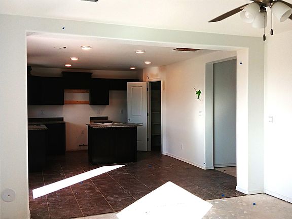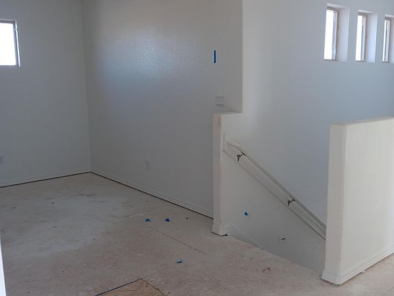 is bordered by staircase leading to a loft & 4 bedrooms. Master suite down stairs, includes single sink vanity, garden tub, walk-in closet. Utility room downstairs. Covered patio is included. One car garage.
