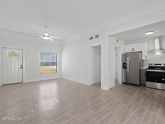Super Cute updated home 3 bedrooms 2 baths completely renovated, new tile plank flooring through out in light grey, new cabinets, new quartz counter tops, stainless steel appliances. Huge corner lot with RV or boat parking next to carport on a concrete pad. Great location 15 min to airport 20 min to the beaches 15 min to st johns town center. Easy to show