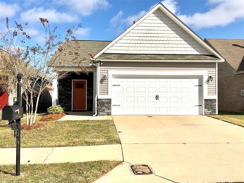 Great 3 Bedroom, 2 Bath house with a double garage - in Park Lake, conveniently located to dining and shopping in east Montgomery and easy access to I-85. Stacked stone and vinyl lap siding for low maintenance exterior. Large living area with wood floor and fireplace. TV wall mount and TV REMAIN. Open floor plan. Large eat-in kitchen with room for island also has granite countertops, loads of cabinets (corner cabinet lazy susan). Stainless appliances and stainless/glass range hood. SBS stainless refrigerator REMAINS. Large pantry. Large main bedroom with deep walk-in closet. Main bath features a double vanity, granite counter tops, large soaking sub and separate shower. Split floorplan with second and third bedrooms sharing a hall bath. Laundry room is also located off the hall. Covered grilling porch off the dining area. Privacy-fenced back yard.