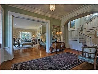 Prestigious Residence downtown, qualified under Mills Act for reduced taxes; 5 Bedroom, 3 Bath Main residence with 9-foot ceilings, original deep crown molding of heart redwood with picture hanging moldings; finished basement; 26,000+ square feet landscaped grounds consisting of private gardens, mature trees, well-water irrigation; Separate guest cottage has 17-goot ceiling with Kitchen and fireplace.