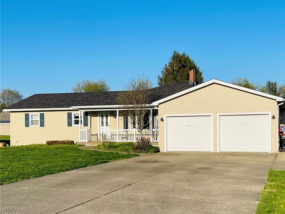 Spacious ranch home designed for entertaining family & friends with added bonus/social room located on large corner lot on cul-de-sac. Main floor offers 3 bedrooms, 2 full bathrooms, living room with gas fireplace, kitchen with walk-in pantry and adjoining dining room, perfect for entertaining. Lower level offers den/study or family room with built-in cabinets & shelving, full basement, crawl space, full bathroom and access to large back yard. 32x16 inground pool with custom deck, vinyl fencing & handicapped accessibility. Plenty of parking with a 2 car attached garage and a 4 car detached garage (30x42). Home is equipped with 2 furnaces, 2 a/c units, both public water & sewer, private well & septic. New roof in 2022, new vinyl siding in 2023.