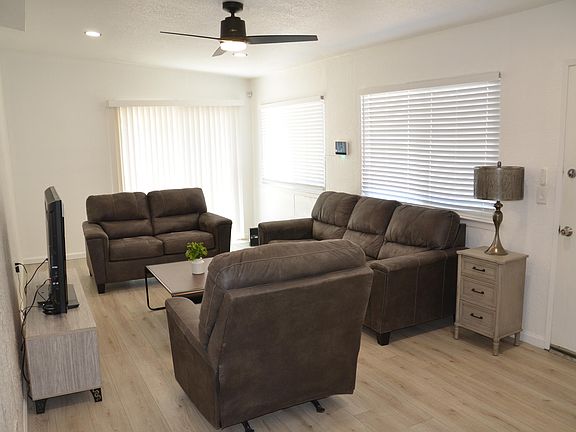 Here it is!! This is a great opportunity for the home owner or investor. This home has been completely remodeled. Essentially 3 separate units under one roof. The main part of the house is a 2 bedroom 1 bath that includes the refrigerator and a new HVAC unit. The garage was a living room at one time but has been converted to a studio apartment complete with it's own bathroom and kitchen. The kitchen has a sink and a 2 burner hot plate. It is heated and cooled by a new split HVAC unit. There was a secondary living room at the back of the house that was converted to a studio apartment with it's own kitchen and bathroom. The kitchen has a sink and the unit has it's own HVAC split unit for heating and cooling. All three have their own entrances. The entire home has new laminate flooring, tile flooring in the bathroom. All new dual pane windows and blinds. All cabinets and countertops, light fixtures, fans with remotes are new. Fresh interior and exterior paint as well. Nielsen Park across the street & Edison Bethune Charter School withing walking distance. This is a corner lot with an alley in the back.