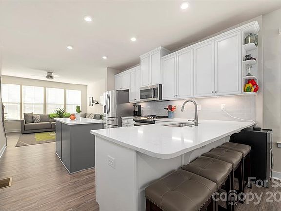 Immaculate, END UNIT townhome in Southend. 1847 sq ft with 3 bedrooms and 3.5 baths. Seller chose many upgrades during construction process including: luxury flooring package throughout, under cabinet lighting in the kitchen, gas oven with 5 burners, Seamless glass shower, custom blinds throughout the townhome, drop zone in main level entrance hall, ceiling fans in each bedroom. The end unit has the quad window pkg in main level living and an extra exterior window allowing tons of natural light. A "Juliet" balcony off the kitchen allows an alfreso dinner for two! The fourth level has its own living space and full bedroom and bathroom. The rooftop terrace will not diappoint! The garage is large enough to accomodate a tandem parking scenario. Seller currently uses half the garage for an in home gym. Hi-Wire Brewing Company is a block away. This townhome has all that Southend has to offer while quiet enough to enjoy your rooftop terrace.
