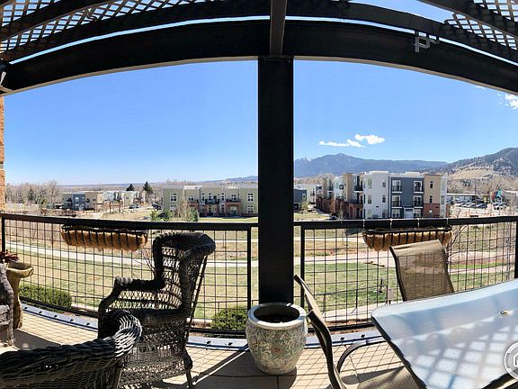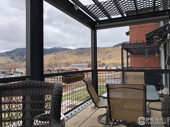 One the finest locations in Uptown Broadway boasting massive high ceilings with walls of glass and a large balcony to enjoy the magnificent panoramic views of the Flatirons and the Foothills! Urban contemporary styling with granite countertops, stainless steel appliances, & bamboo flooring! Bright and open floor plan with 2 bedrooms, 2 full baths, and a loft study that also enjoys the incredible views! Top floor unit with secure entry, a one car detached garage and more! In the heart of shops, restaurants, the new proposed North Boulder Library, and backing to the bike trail system!!!