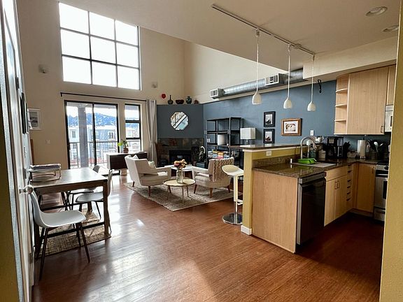 Premium North Boulder 2 bedroom, 2 bath modern, light-filled condo features an open floor plan with an exclusive view of the Flatirons from a large south-facing balcony protected from western sun, noise, and wind. Expansive two-story windows, 18-foot ceilings, loft study, gas fireplace, granite countertops, stainless steel appliances, maple cabinets, and bamboo flooring round out the many high-end, featured amenities in this secure building unit. Second floor private primary bedroom with ensuite bath and same-floor laundry. The private, 1-car detached garage includes loft, and storage racks. All this is within walking distance to restaurants, coffee, bakery, dog park, Foothills Community Park, and the beloved hike/bike/run trail network only North Boulder can deliver. Tenant pays for water and utilities (gas & electric, internet) No smoking allowed Up to 1 small pet allowed.