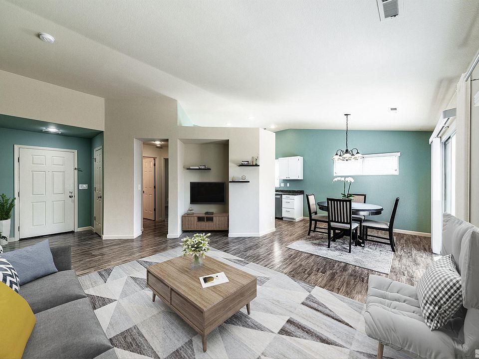 Nestled on a picturesque street, showcasing a blend of natural beauty and suburban charm. This single-family home features new flooring throughout, freshly painted, added shelving, new trim installed, refreshed cabinets and an attractive exterior with a well-maintained front yard, mature shaded tree, and a welcoming entrance. The 2 bedroom layout is carefully crafted to provide functionality and comfort. Light and bright open-concept living space that seamlessly integrates the living, dining, kitchen area., The back yard is as low maintenance as they come with paver patio and drip system small bushes along the edges. A truly "set it and forget it" when you like to travel or work often type of home. Walking distance to grocery stores, Veterans, bike paths, open spaces, shopping, and good schools.