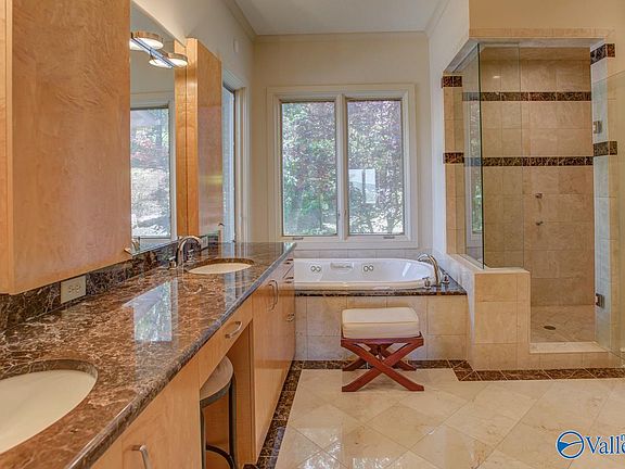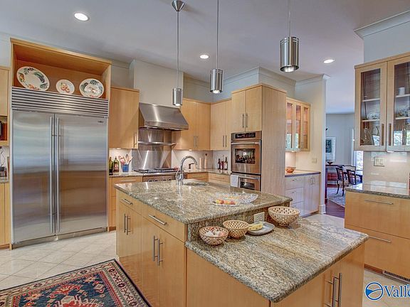Gorgeous contemporary home with amazing view on Walton’s Mountain. Custom designed with architectural features including Brazilian cherry flooring, maple built-ins, full masonry fireplace w/ granite facade. Chef’s dream kitchen with Thermador professional appliances, Sub Zero refrigerator, granite counters, kitchen island, multiple workstations & cabinet pull out shelving. Enjoy entertaining in the sunroom or outdoors on your patio with park-like landscape. Owner’s retreat features sitting area, glamour bath & 2 walk-in closets. Main level guest suite! This home is a work of art! Large workshop & storm shelter. Only minutes to restaurants, hospital, Redstone Arsenal, shopping & recreation.