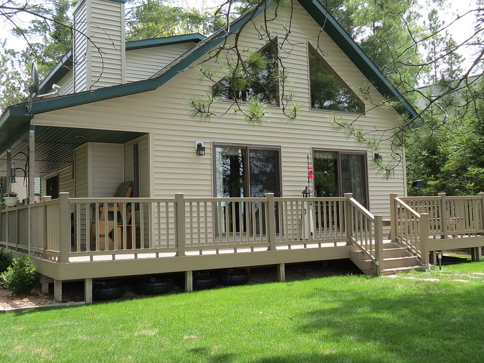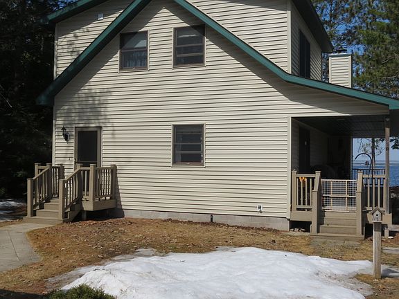 Charming 2 bedroom, 1-3/4 bath year-round home with 78' of frontage on All Sport Black Lake with gorgeous sunset views. Two story with loft area that has a beautiful view of the lake. Home sits off the road on 0.6 acres. Beautiful composite deck across the front with covered wrap around. Two car oversized garage with two finished and insulated bonus rooms above, one heated. Features include open floor plan with cathedral ceiling, air conditioning, 2 x 6 construction, Generac (whole house) generator, underground sprinkler system, fireplace, Anderson windows and doors, pantry, huge walk in closet in master bedroom and deep crawl with double sump. Also includes 10 x 14 storage shed and partially cemented drive. This home is a MUST SEE!