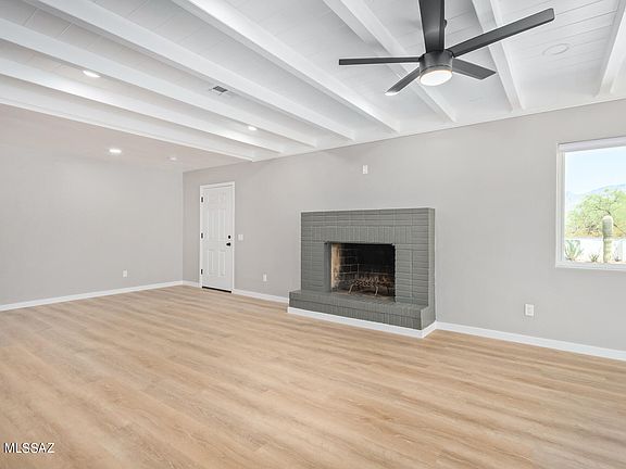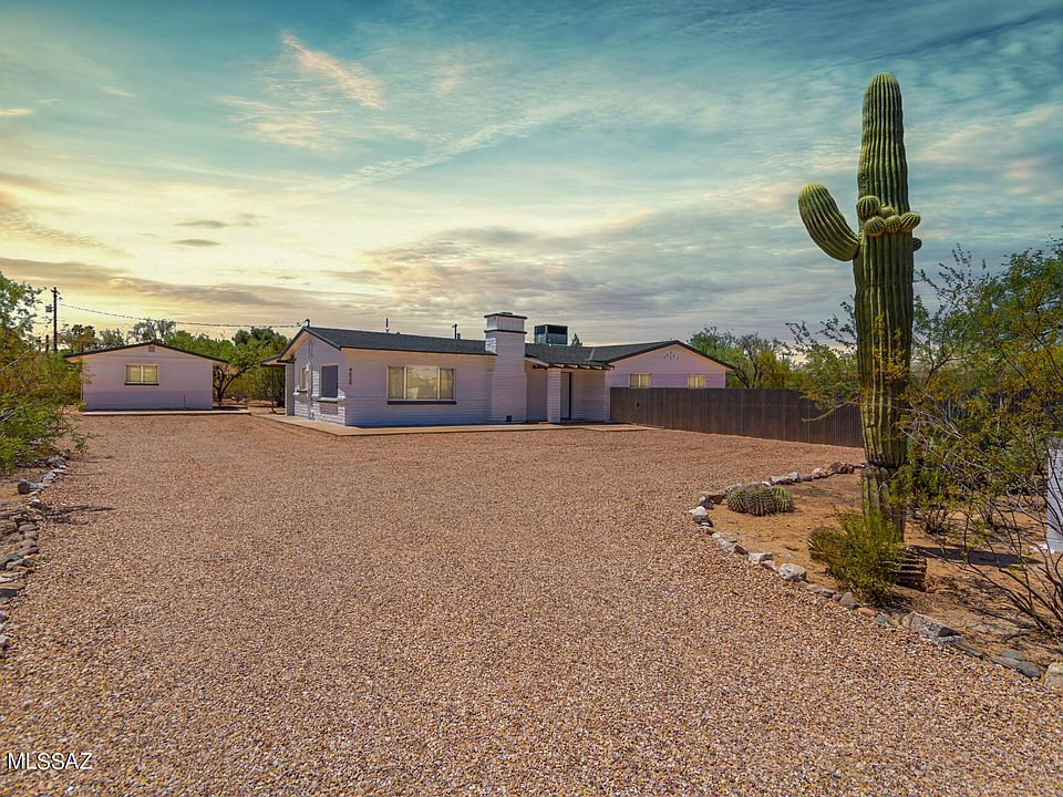 Welcome to this exceptional beauty nestled on over 1 acre of land in Tucson! Featuring breathtaking mountain views & an impressive desert landscape. Discover a charming interior showcasing wood-look flooring, soothing palette, a cozy fireplace, & plenty of natural light that creates a warm & inviting atmosphere throughout. The stylish kitchen boasts gleaming white shaker cabinets, quartz counters, stainless steel appliances, & recessed lighting. Main bedroom offers a pristine ensuite including a tub/shower combo perfect for unwinding after a long day. This property also has convenient detached guest quarters, providing an excellent space for overnight guests!A fabulous backyard with a shimmering blue pool and gorgeous mountain views great make this home great for entertaining. Owner/Agent