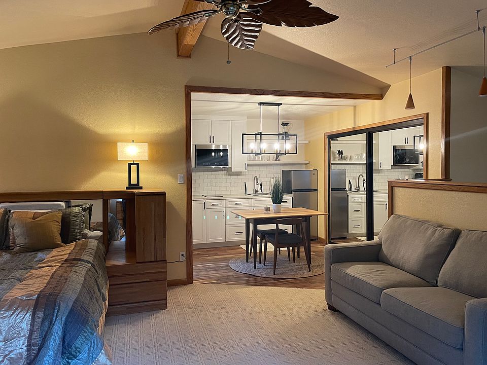 Beautiful, fully Furnished studio in a beautiful custom built 3,000 square foot home Private entrance. Upstairs 700 sq. ft. unit with a private deck overlooking botanical gardens in the foothills of Montecito Heights, 2 miles above downtown Santa Rosa. Looking for an employed person who is wanting a quiet, safe home. Kitchen is fully stocked and linens are also provided. No pets. All utilities and wifi included.