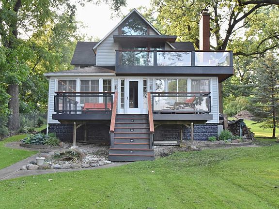 Beautiful, Lake Pistakee waterfront home. Authentic 1920's architecture with today's upgrades. An architect owned home where obvious expertise and an eye for making the most of a Lake view has added some one of a kind stunning features to the property. Large .62 acre lot overlooking sought after Pistakee Lake with beautiful mature trees as your backdrop. Stunning, panoramic views as you drink your morning coffee on the new master bedroom private balcony or the first floor deck that is surrounded by clear acrylic glass so as to not impair your enjoyment of the views. Living area open concept and spacious, new flooring throughout. Newly refinished hardwood floors in your wraparound 3 season porch which is large enough and ideal for entertaining. Every room accept 4th bedroom has a lake view, Numerous updates - including: new carpet, both levels. Furnace, upper windows, roof, tankless water heater, heat generating fireplace and many more. This house is spotless and in move in condition.