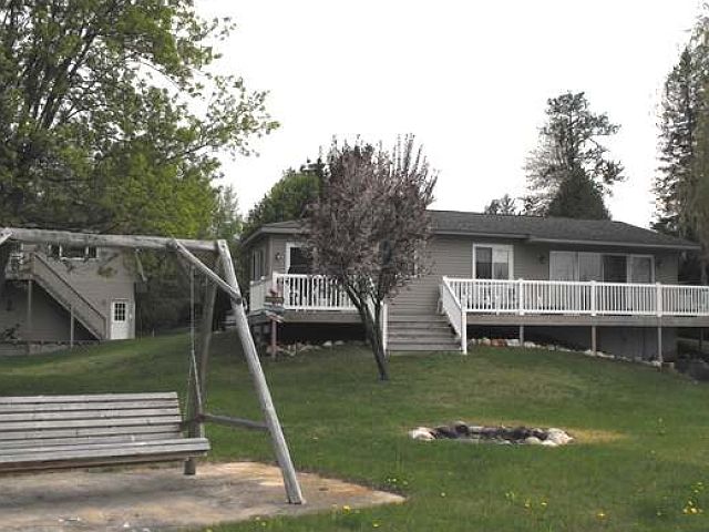 Wiggins Lake WaterFront Cottage with over 106' of gorgeous frontage. This cottage is fantastic for the growing family or more then one family. Many updates & well cared for this 2+ bedroom cottage includes an apartment above the garage. Features large entry, open living concept, partial basement for storage and fantastic views of the lake. Seller financing available with large down, short term.