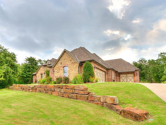 Check out this GORGEOUS home and wooded 1 acre lot, in Shadow Hill, in Choctaw! The home has 4 good sized bedrooms, plus an office, plus a bonus room, and 3 1/2 bathrooms. The bonus room has a bar with color changing lights, a sink, microwave, mini-fridge, sink, and cabinets with granite and backsplash. One bedroom is also upstairs, along with a full bathroom. There are 3 walk out attic spaces! The sellers are currently using them for storage, but they have decking and studs...so one could be finished out as a media room, another a bedroom or craft room...and it is plumbed as well! The living room, kitchen and dining areas are open concept, with beautiful hard wood oak floors, large picture windows offering natural light, and beautiful custom cabinetry. The kitchen has a HUGE island for storage and extra seating, along with lovely granite, tile back splash, a pot filler faucet, a big pantry, stainless steel appliance, & gas stove top. The living room has a stone, gas burning fireplace, with a cedar beam mantle, and built-ins! The master bathroom has dual vanities, a walk in tile shower, and a free standing sleigh bathtub. The curb appeal is fantastic- including a brick, dry stack stone and stucco exterior, beautiful bolder retaining wall, wooded lot, and lovely landscaping. The back yard has trees galore, a nature trail and a large back patio for viewing nature and wildlife. The lot across the street is a landscaped neighborhood common space! The garage bays are over-sized, with the third bay including a storm shelter. Ask your Realtor for additional amenities listed in attachments!
