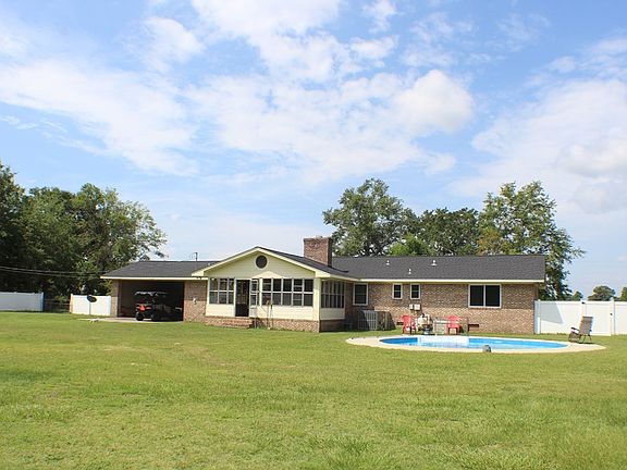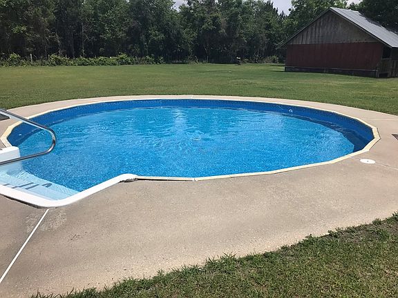 This home features 3 bedroom 3 bath, formal living room, dining room, and family room. All three bedrooms are good size with two of the having walk in closets. Fireplace in family room is brick with blower. Numerous upgrades in 2017 include new roof with lifetime warranty, new double pane windows, new HVAC, and new pool liner and pump. There is a vinyl privacy fence, pool and barn in the backyard. Separate well for irrigation of yard. All appliances including washer and dryer remain with property. The 3 cleared acres surround the home with 5 wooded acres in back.