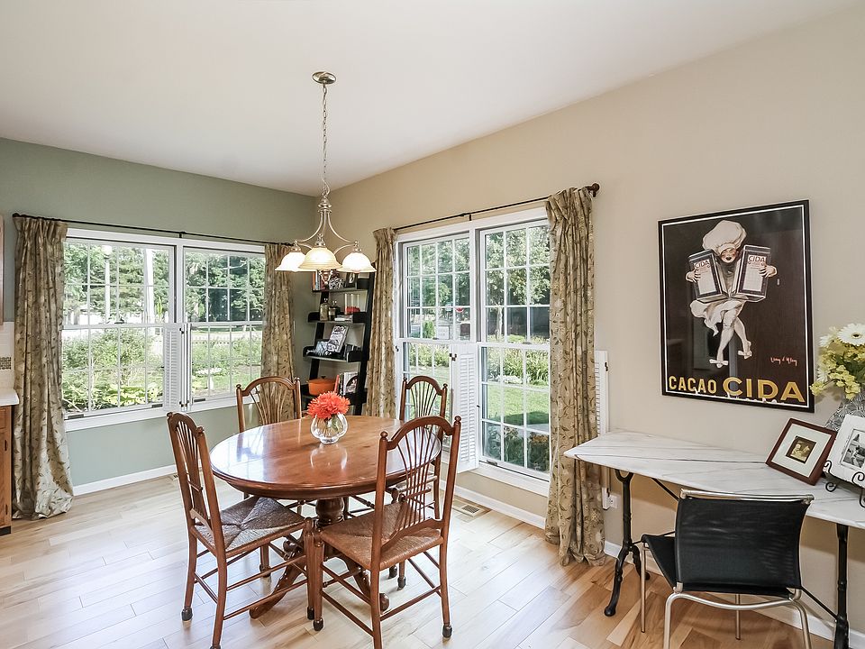 Stunning Providence Village RARE RANCH Gem nestled perfectly on a fully fenced private wooded lot! Gardens line the entryway to this spectacular home! HUGE yard gives you lots of room to play, PLUS 1 block from Kings Park! Beautiful interior with gorgeous HICKORY wide plank wood floors throughout main level! Fabulous Gourmet kitchen w/NEW stainless steel appliances! Love the double oven, Island cooktop, solid surface Countertops, sleek glass/ceramic subway backsplash & SUN FILLED eating area! Great Mud room! Fab Dining Room! Family room with masonry fireplace and access to oversized deck! Master Suite with WIC, Lux Bath! HUGE FULL urban chic finished basement! Providence Village is one of Gurnee's FAVORITE neighborhoods; Community gatherings, Parks, sidewalks, DesPlaines River trails! Woodland dist #50 - WTHS dist. #121! Commuters dream minutes from I-94. You will LOVE this RANCH home from the privacy of the yard to stunning interior! See VT Floor interactive floor plans! LOVE IT!