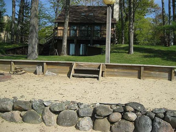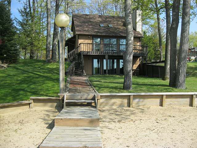 Beautiful waterfront home on main water of private Lake Lancelot with sandy beach area, patio decking, boat dock and sprinkling system. This efficient 3br/2.5 Bath home with 2car garage, is ready to move in and enjoy year round fun: fishing, swimming, boating, snowmobiling, walking, hiking, biking and all diverse outdoor activities. This lovely home has 3 levels with walk out lower level to accommodate extra company on those busy weekend visits! And if that is not enough, Sugar Springs offers two beautiful golf courses, an indoor pool and exercise center and much more !