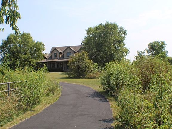 This immaculate 2-story home sits on a spectacular 5 acre lot! Grand 9' ceilings on main level, 8' ceilings in LL. Large main floor master with en suite bathroom, WIC, jacuzzi tub and shower. Formal dining room with beautiful lighting. Hardwood floors in kitchen, dining and entry way. 1st floor laundry. Lovely sunroom with plenty of natural light Amazing family room features a gorgeous brick pellet fireplace, open area view to 2 upstairs spacious bedrooms, both include walk in closets! Full bath on upper level as well. Plenty of cabinets in the kitchen with all appliances that stay! Quaint eat in kitchen area overlooking the serene backyard, great for sunrises! Partially finished LL boasts a large rec room and exercise room plus another storage area. 3.5 car garage. The serene backyard will feel like paradise! Over 100 trees and sunsets for days! Rural setting but only 12 mins from Rockford! Ag/Rural. New roof in 2017, newer AC in 2013. You won't want to leave this bliss!