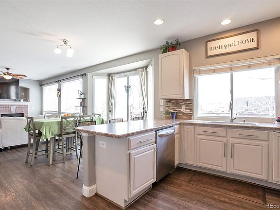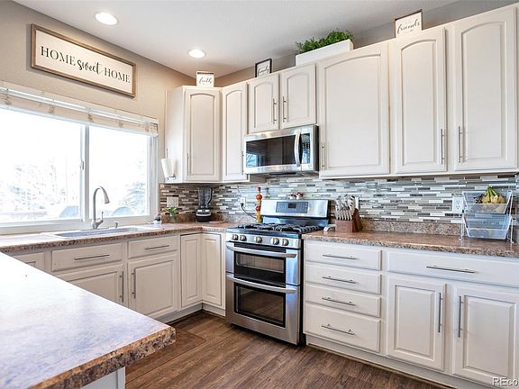Step into this updated home in Willow Trace neighborhood! Featuring newer roof, windows, A/C, water heater, flooring and paint. Relax with your family in the great room with an oversized gas fireplace, adjacent to the eating space and updated kitchen with pantry, double ovens, gas range, stainless steel appliances and built in desk area. Vaulted ceilings welcome you to the formal living and dining spaces. Walk up to 3 bedrooms and a loft on the second floor. Emerse yourself the primary bedroom with vaulted ceilings, 5-piece bath with dual vanities. Take advantage of the ease of cleaning with all wood floors thorough out the home. Unfinished basement ready for your personalized touches. Walk out to the elevated deck with eastern views which provides that nice cool shade in the afternoon for enjoying! Award winning Cherry Creek Schools are walking distance.