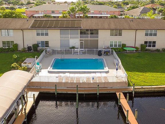 Rare Opportunity to own a SE Cape Coral 1st Floor End Unit Condo with a Private Dock and Canal leading out to the Gulf of Mexico. The Homeowner has completely remodeled the Kitchen in this Quiet Community, and Highly Desired section of SE Cape Coral, close to Shopping, Restaurants, and the Wonderful Beaches of SW Florida. Each Homeowner has their own Assigned Dock and this Unit has a Beautiful, New Dock and 12,000 lb. Lift that is perfect to hold you Boat. It is a short ride with one bridge out to open water, and very close to Cape Coral's Bimini Basin Project, a future destination area. This is a Nicely Updated Condo with a Indoor Laundry Room. The Community boasts a Large Heated Pool perfect for Year Round enjoyment. The Quarterly HOA Fee includes Flood Insurance, Water & Basic Cable. Pets are allowed with Limits.
