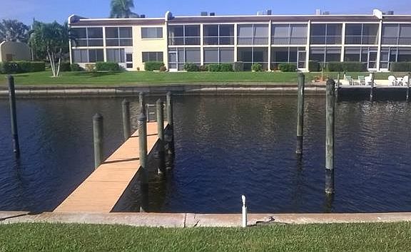 Your own piece of paradise with its own 28' boat dock and the association allows lifts. Quiet location on cul de sac for either boating or walking to downtown activities, Four Freedoms Park and restaurants. One block to the Rubicon and one bridge to the river. This 2 bedroom 2 bath condo allows pets and is not 55+. Granite counters in kitchen and bathrooms, stainless appliances, tile on the diagonal in the living areas, carpet in bedrooms, sliders to lanai from both master and living room. Unit has been replumbed. Large Laundry room in unit. Pool has a new heater and was just resurfaced, roof was replaced after Charlie..