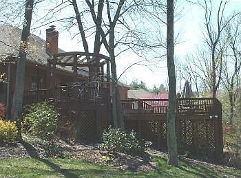 Nestled among a broad array of mature trees and landscaping is an exquisite estate situated on over 5 acres providing both privacy and tranquility. The floor plan flows exceptionally well and allows great flexibility for both comfortable family living and entertaining both indoors or on the extremely large deck with retractable awning overlooking the lush woods and sparking lakes. The floor plans features a fabulous kitchen with walk in pantry, raised breakfast bar that seats 6, built in desk, 8 burner range, double ovens, soft close drawers, built in refrigerator, pull out spice towers, granite counter tops, custom Fehrenbacher cabinets and lovely breakfast nook. The second gem of the home is the grand great room with fireplace, dining area (perfect for festive holiday gatherings) with custom cherry built in buffet, cherry dining set with beautiful chandelier above, and stunning cherry bar complete with barstools, refrigerator, icemaker, sink, cherry cabinets and mirrored walls. The master retreat with sitting room has a luxurious bath with his and her vanities with copper vessel sinks, walk in closet, 2 person tiled walk in shower and commode room. To complete the home there are 6 additional bedrooms, 5 full baths, 1 half bath, laundry room with cabinets, office, living room, dining room and theater room in the lower level. Among the fine amenities included are, Tiger hardwood floors, stacked crown molding, granite counter tops, 2 blinds, french doors, fluted arched doorways with rosettes, skylights, intercom, wired for surround sound, floored attic rooms, columns and art object niches. Property has 4 car garage with work bench, extra tall garage doors, and wall cabinets, extra parking pad and extensive landscaping.