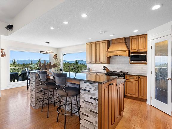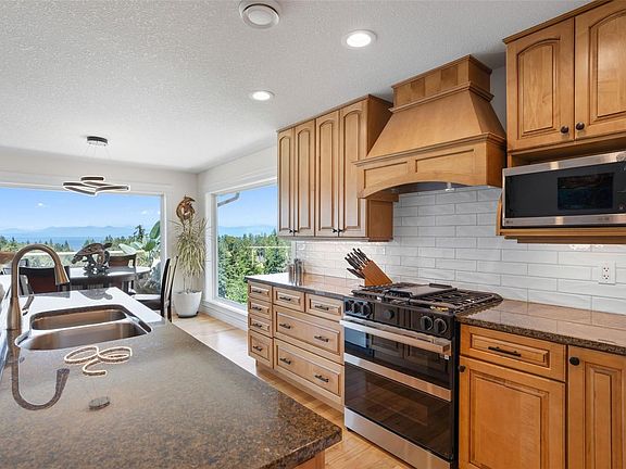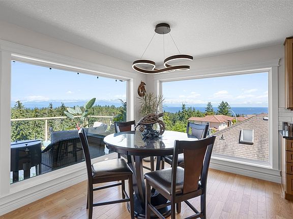 Panoramic ocean views in this stunning 6 bedroom, 5 bathroom home. W/over 3900 sq ft of West Coast comfort, this level entry home is drenched in natural light, expansive windows, chef's kitchen w/granite counters, new stainless steel appliances, gas range, walk in pantry & a cozy grand statement fireplace. The primary suite feels like a retreat w/ a family media room, 3 beds - 2 of which have their own ensuites. A portion of this could partially convert to a 1 bedroom suite if one desired w/o much effort. The lower level adds more flexibility with a bright living area, kitchenette, full bath and separate entry. Outside offers decks on all 3 levels, hot tub, low maintenance turf front & no maintenance back, a double garage & loads of parking. Just minutes from Neck Point, Pipers Lagoon, North Nanaimo amenities this home checks every box for functional living and coastal luxury.